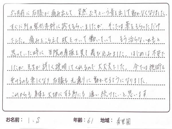 - 膝を痛めてから違和感が続く